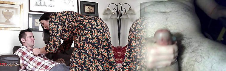 Your father has a bigger fuck-stick! Step-mother compares dicks of stepson and husband while daughter-in-law films everything on movie