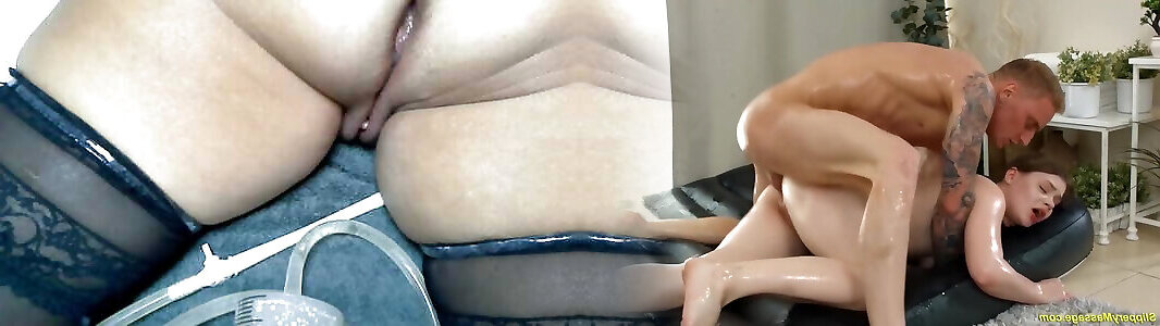 My perverted stepmom helps me with a massage but then I end up fucking her and cumming on her face