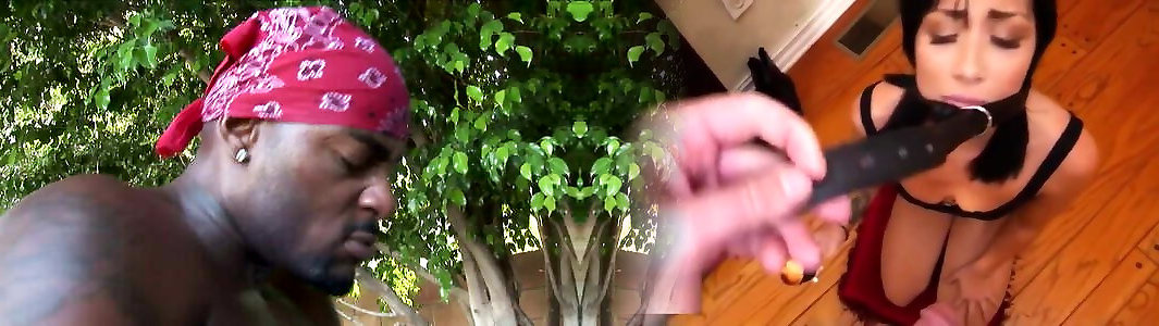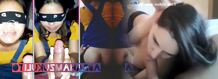 Slutty Latina trying out her gifted boyfriend&039;s BBC super black cock blindfolded and gets full face facial
