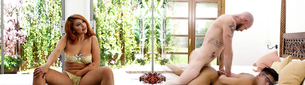 Shemale Kalena Rios and bicurious Kaio break their asses by