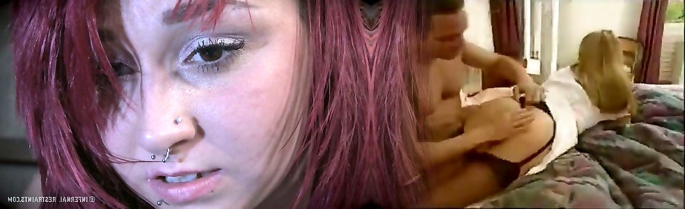 Bare redhead with lovely boobs and caboose is flagellated in bondage & discipline dungeon space