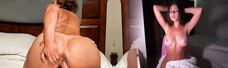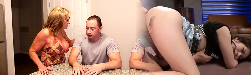 Horny Step Mom was caught by Step Son and She Seduces him with her 2 Meaty Cocks