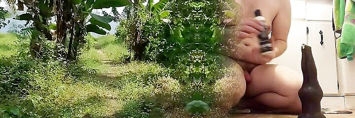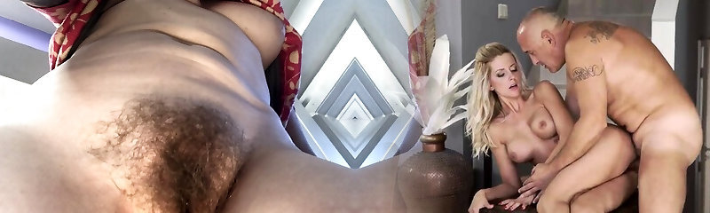 Horny old fat granny seduces with her naked body. She showcases her hairy pussy and saggy fun bags.