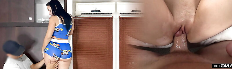 Stepmom in the kitchen gave me to touch her tits and permitted me to fuck her in the arse and in her mouth