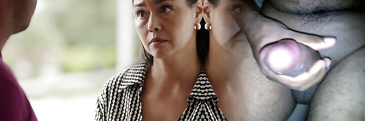 Busty German Cougar Angel Eyes shocked at step sons huge jism facial