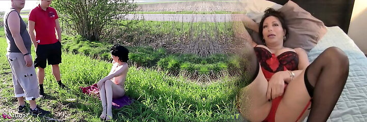German Nudism Mature Seduce to Fuck by 2 Stranger Public