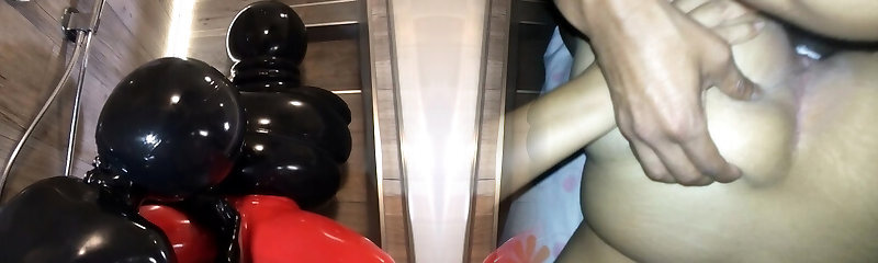 Wanilianna wears a black latex coat, latex dress, latex top, and high high-heeled slippers, but underneath she's wearing layered nylons