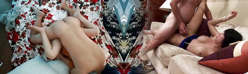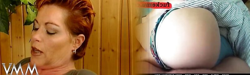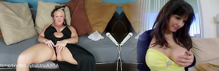 Super-fucking-hot blonde MILF with big tit gets pussy eaten and fake penis fucked by older brunette