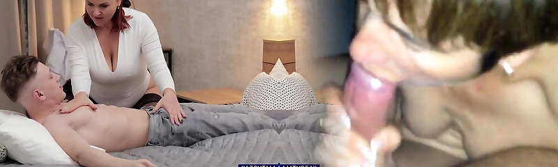 Stepmom teaches STEPSON how to shave HIS Lollipop. But she LOST control . MILF Handjob. CUM on Titties. XSanyAny