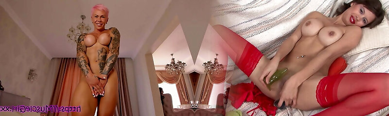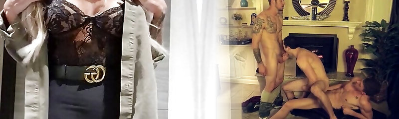 Tit cumshot for the light-haired with giant fake boobs after fucking in the nastiest bisexual threesome