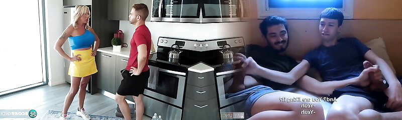 Busty Stepmom Helps Horny Son Jerking Off Gave Him Dirty Talking Handjob Got Huge Cumshot In Come Back