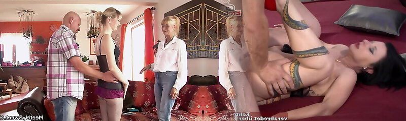 The Landlord increasing the rent, but his Milf tenants negotiate a discount with a FFM Threeway